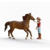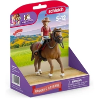 Set contains: 1x figure Hannah, 1x horse Cayenne, 1x hat 1x bridle with reins, 1x bracelet 1x saddle