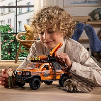 The adventure vehicle is once again on the road in the jungle. This time, Ranger Tom has to help a little Asian elephant baby. Fortunately, the powerful off-roader can cope with the rough terrain in the jungle. On site, he parks a little away from the baby elephant and fires the net cannon on the roof. He skillfully throws a net over the animal to catch it. Next, he lifts the boy onto the Truck bed using the cable winch. There, he can examine and treat it in peace. Apparently, the little one hurt his leg. Ranger Tom carefully puts on a bandage. All done! Now the baby elephant can go back to her herd.